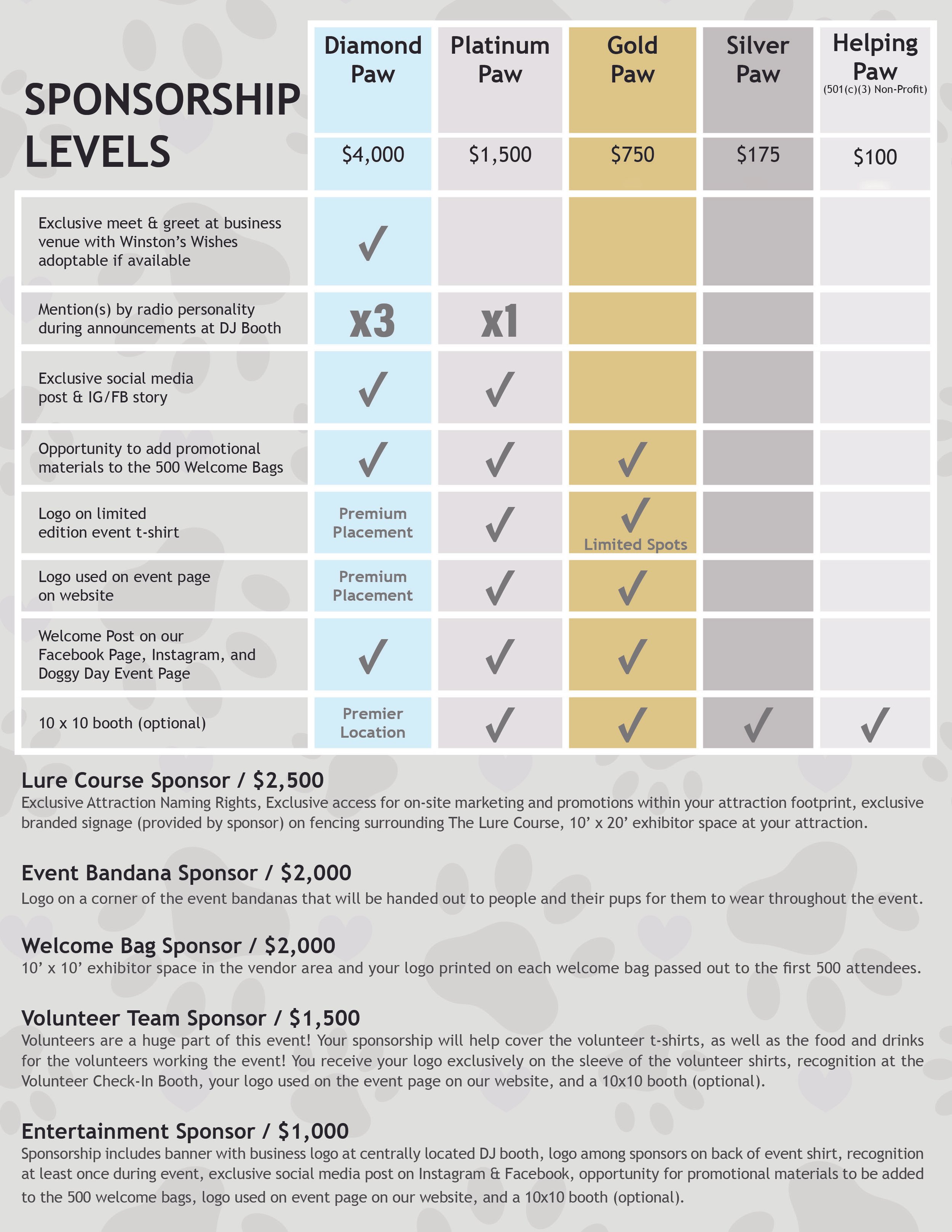 Doggy Day at Deer District 2026 Sponsorship Levels