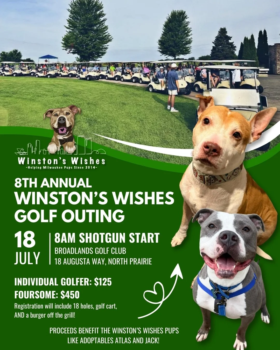 FORE...PAWS!" The Winston’s Wishes Adoptables want you to grab your paw-ters and hit the greens! It's time for the 8th Annual Golf Outing benefiting Winston's Wishes at the beautiful Broadlands Golf Club!